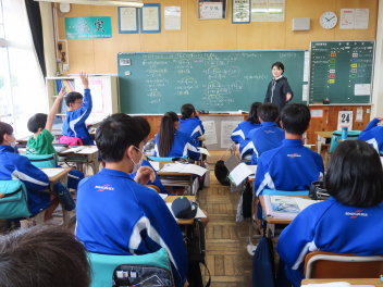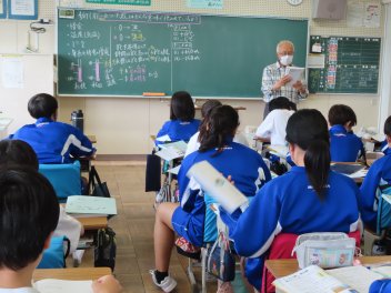 こちらは1年生の数学の授業です。「算数」から「数学」へと変わりました「自然数」「素数」といった言葉が飛び交っていました。「自然数」がどのような数で、「素数」がどのような数なのかしっかり説明できますか?