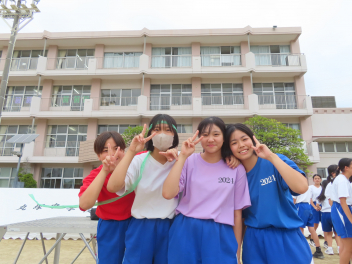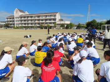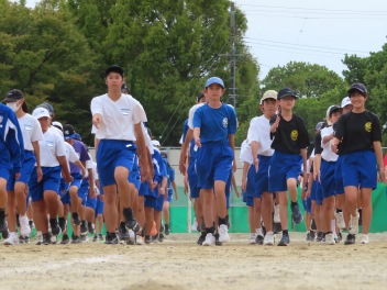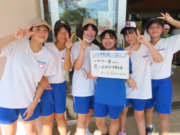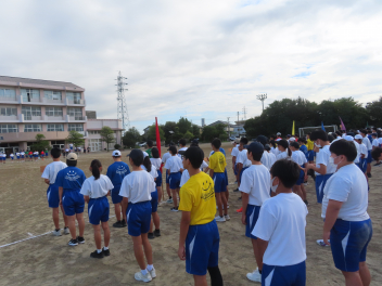 運動が得意な人もいれば苦手な人もいる。体育大会では、いろいろな種目でいろいろな順位がつきます。しかし、「一生懸命に全力でやる」「みんなで参加する」「みんなで協力の声掛けをする」「笑顔で楽しくやる」「全力で応援する」「下級生に3年生としてのあるべき姿を示す」「係の仕事に責任を持つ」など、数字や順位とは関係のない多くの「価値」が転がっています。「勝ち」よりも「価値」をできるだけたくさん手にしてください。