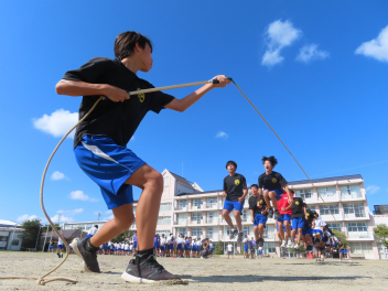本日は、午前中に開閉会式や集団演技、長縄の練習などを行いました。