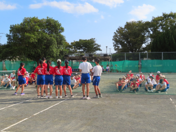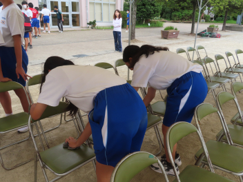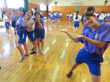 今年度の体育大会の新種目についての説明と練習が行われていました。
