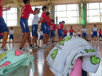 体育館では赤団。