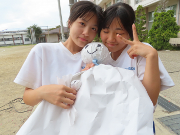 各クラスで新聞紙をまるめて、色テープで巻いて手作りしたそうです。