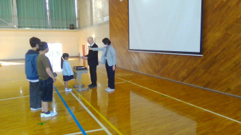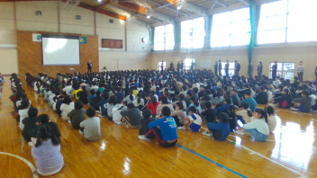 • 2月16日(月)、新しいラインが引かれ、床がピカピカになった体育館で今年度最後の朝会が行われました。久しぶりに全校児童が集まりましたが、入場から整列まで静かに行動でき、とても立派な態度でした。
