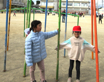 学年で交流しながら、おもちゃで遊んだり遊んでもらったり…たくさんの笑顔を見ることができました。frown