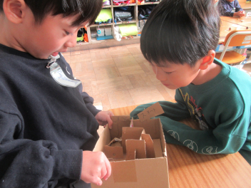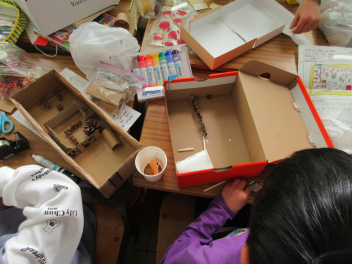 おもちゃ作りの過程で、お客さんに楽しんでもらうために、友達とアドバイスをし合い、改良を重ねました。