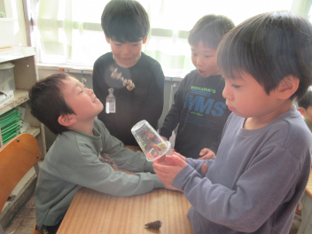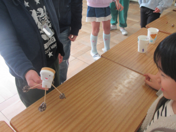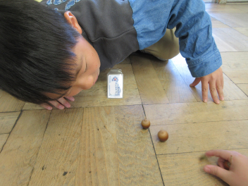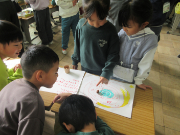 「どんぐりのやじろべえが面白かったよ。」「どんぐりごまの上手な回し方を教えてもらったよ。」