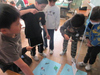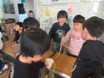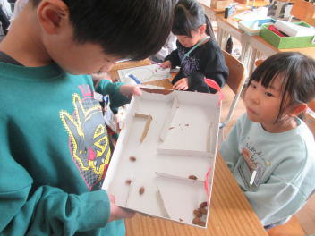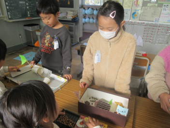 • 生活科「たのしいあきいっぱい」の学習で、「あきのおもちゃやさん」を行いました。