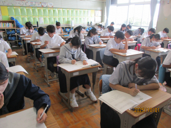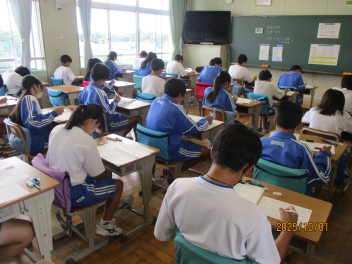しーんと静まり返った教室で、真剣に取り組んでいます。