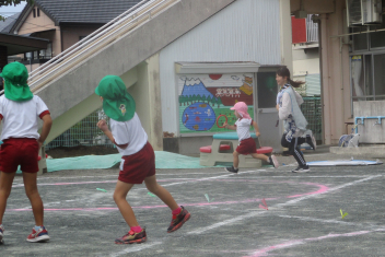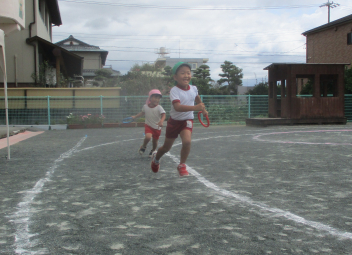 今日は長い時間戸外で遊ぶことができたので、リレー遊びが盛り上がりました