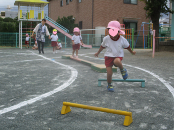 他にも、平均台を渡ったり、棒をジャンプしたりして、体を使ってたくさん遊びました