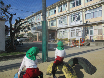 子供たちは、担任の先生と一緒に無事に園庭に避難ができました
