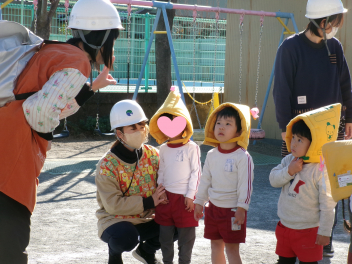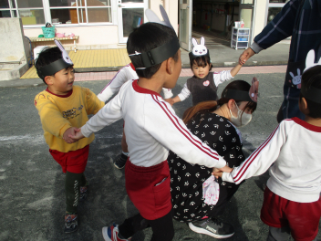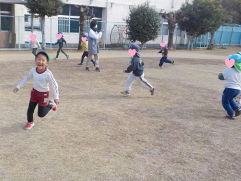 『なかよしタイム』は、体操やダンス、マラソン、集団遊びの流れで、みんなで遊ぶ時間です