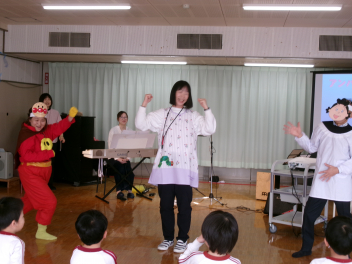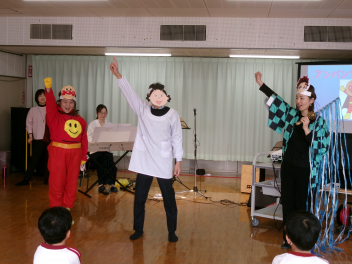 キャラクターたちの寸劇には、先生たちも参加させていただきました。