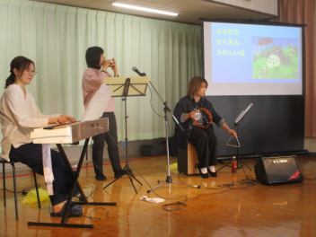 幼稚園や小学校など、様々な場所で音楽活動をされている皆様で、園児たちに親しみのある歌をたくさん演奏してくださり、最初から最後まで大盛り上がりでした