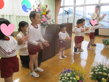 入園式では、2名のかわいいお友達をお迎えし、お祝いの言葉や歌を披露しましたfrown