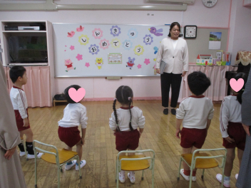 始業式ではひとつ大きい組になったことを確認し、みんなで仲良く元気いっぱい遊ぼうねと、園長先生のお話を聞きました