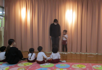今日は、りす組さんが披露する姿を年長ほし組さんがお客さんになって応援しましたsad