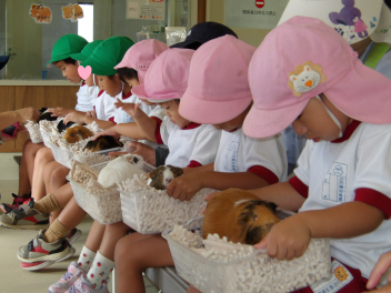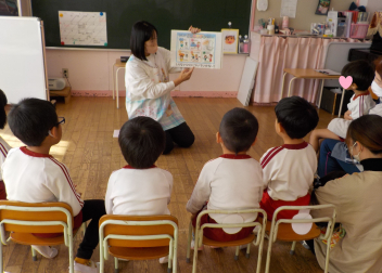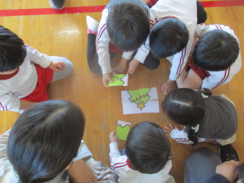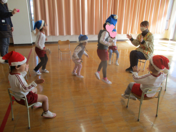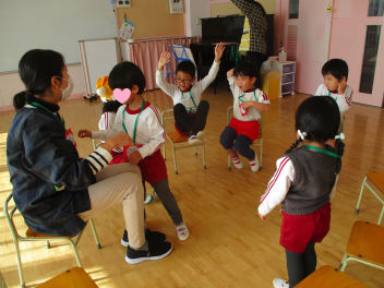 『なかよしタイム』は、体操やダンス、マラソン、集団遊びの流れで、みんなで遊ぶ時間です
