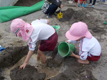 「幼稚園の思い出は何ですか?」「砂場でたくさん遊んだことです!」