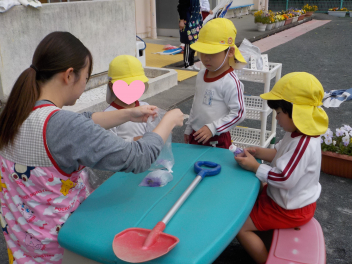 そして・・・年長児からのプレゼントもあると聞いて、大喜びの年少児・年中児の子供たち