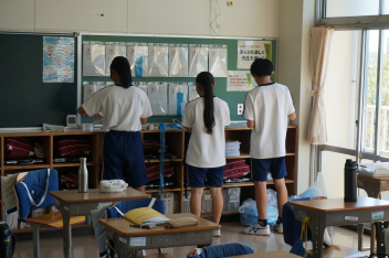 もう写真を撮り終えたあとで、体育大会の準備をしていました