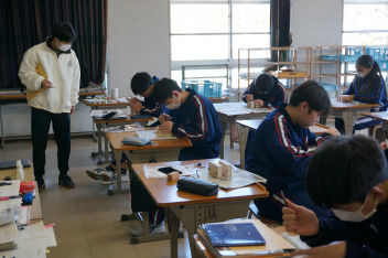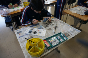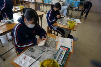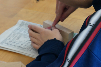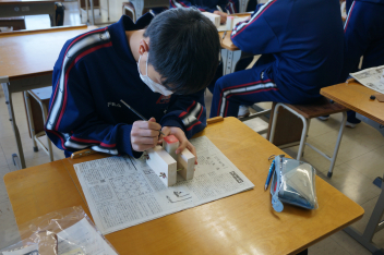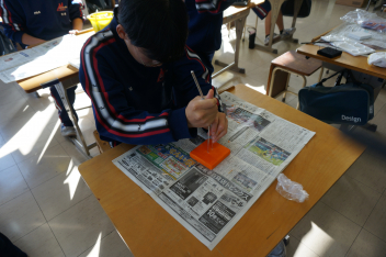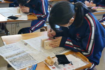 3年生の美術では「篆刻(てんこく)」作品の制作を行っています