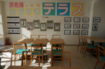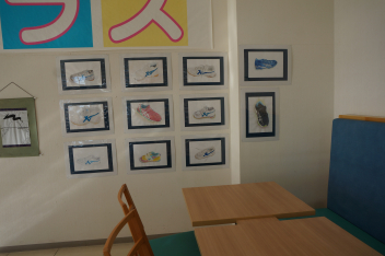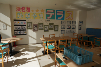 NEXCO中日本さんのご好意で、飲食スペースの正面奥とその右側の壁面をお貸しいただき、三ヶ日地区をはじめとする幼稚園、保育園、小学校、中学校などの作品を展示しています