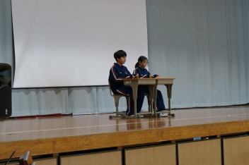 続いて1年生が中学校の1日の様子を劇で紹介してくれました