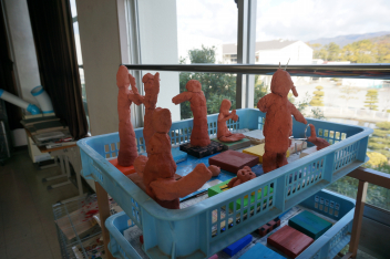 制作中の「はにわ」が、サンテナ(コンテナ?)に並んでいました