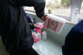 インフルエンザなどの感染症が心配な時期なので、新しいせっけん液でよく手を洗ってもらいたいですねsad