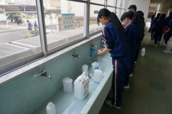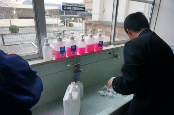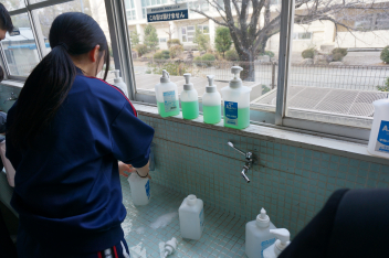 今日は放課後に専門委員会があって、保健委員会の活動でせっけん液の交換をするようです