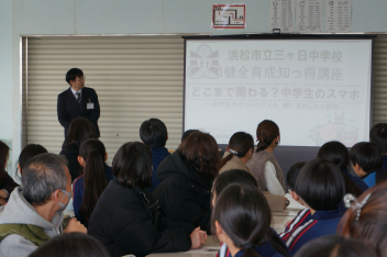 4月にも全校で「情報モラル教室」を行い、先日も1学年は学年懇談会において親子で「情報モラル」について講師を招いて学習しました。