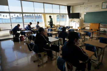 主に愛知県の私立高校等を受検した生徒たちが1組の教室で学習をしていました