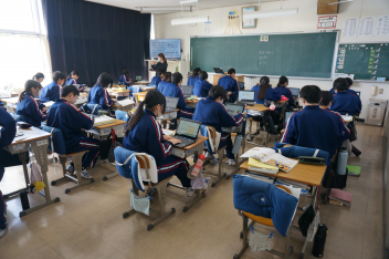 誰もいないのかと思われた2階ですが、1組の教室には生徒がいました