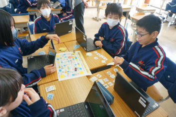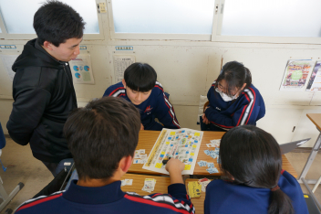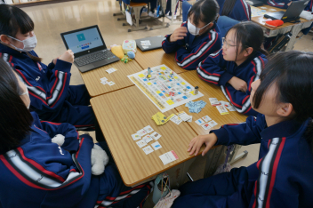 5時間目に全校一斉に「防災学習」として「防災すごろく」を行いました