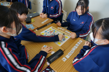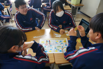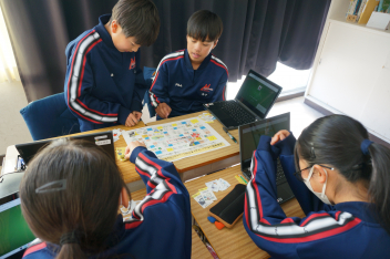 防災すごろくでは、災害が起きた時の想定ができ、どのような行動をとればよいのかグループで想定しながら、すごろくを進めていきましたsad