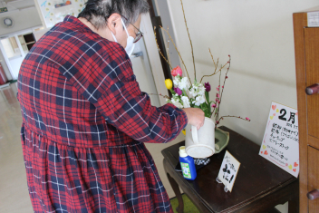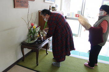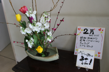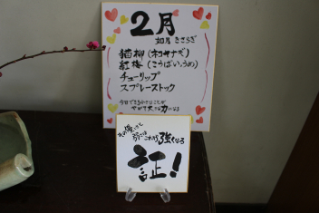 2月のお花は、猫柳、紅梅、チューリップ、スプレーストック です。