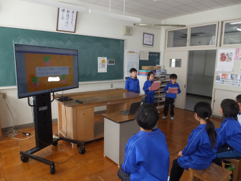 • 今日は東の子発表会、1・2年生は生活科やその他の様々な教科で学んだこと、3~6年生は総合的な学習の時間に追究してきたことを一人一人発表しました。