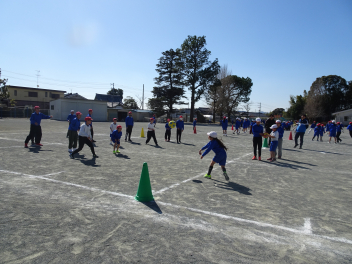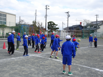 • 今日は、6年生イベント第2弾、3年生とのドッジボール遊びでした。