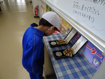 鶴見さんは、2023年に行った三ヶ日東小学校150周年記念運動会にスペシャルゲストとして参加してくださいました。今回、「母校の後輩たちにメダルを見せてあげたい」と貴重なメダルを送ってくださいました。