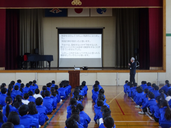 校長先生からは、挨拶についての6年生の作文の紹介があり、3学期もみんなの絆を深める挨拶をしていこうというお話がありました。