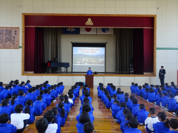 校長先生のお話では、全校児童で2学期の様々な行事や活動について写真を見ながら、2学期にがんばったこと、学んだことを振り返りました。