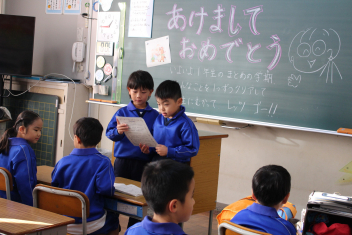 教室では、3学期にがんばりたいことを考えてめあてを立てたり、冬休みの思い出を楽しく話したりする子どもたちの姿が見られました。