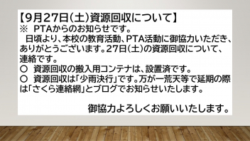 • 本日は、資源回収に御協力をいただき、どうもありがとうございました。