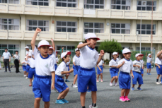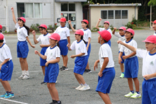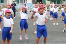 6年生の振りや歌を一生懸命まねしながら、練習する下級生たち。