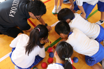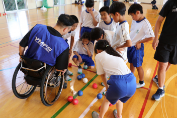 火曜日に、4年生が総合的な学習の時間に、「チャレンジ!ユニスポ」としてパラスポーツ種目「ボッチャ」を行いました。