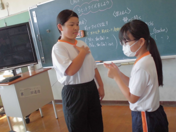 •  5年生は外国語科の活動で「3ヒントクイズ」を行いました。