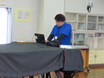 Unit4「He can run fast.She can do kendama.」の単元で子供たちは今までの知識に加え、He/SheとCan/Can'tの使い方を学びました。そこで、先生や友達に、できることやできないこと、誕生日、欲しいものなどを聞き、その情報をもとにクイズ大会を開きました。