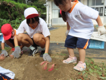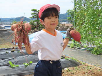 •  秋晴れの空の下、待ちに待ったサツマイモの収穫をしましたsad