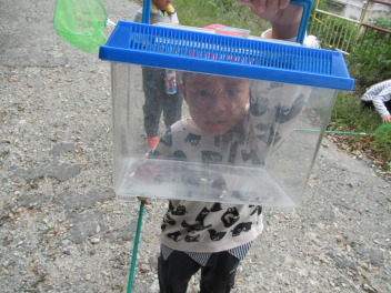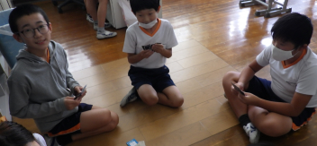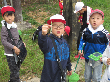虫取り網を持って生き物を懸命に追いかける姿や、秋の自然をよく観察しながらタブレット型端末で撮影する姿が見られました。子ども達の生き生きした表情が印象的でした。sad